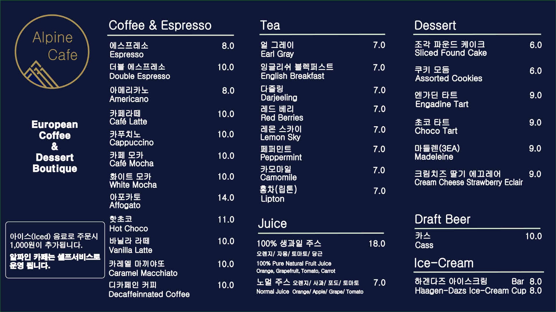 Alpine Delhi is a premium bakery shop featuring pastry chefs with years of experience and know-how in luxury hotels. There are various kinds of bakeries as well as simple meal menus such as sandwiches and Christmas season cakes. We also sell gifts such as hotel vouchers and holiday gift sets along with chocolate, wine and cheese to express our gratitude to our loved ones.
